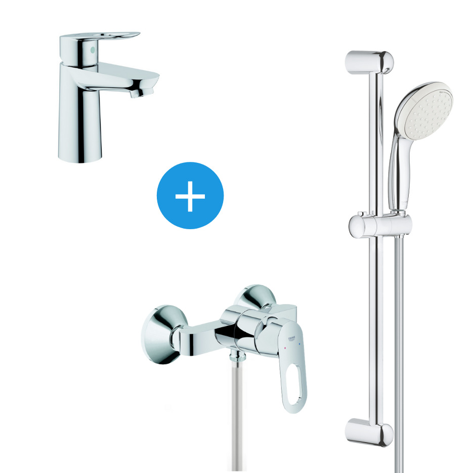 Grohe BauLoop Set mitigeur de douche + Barre de douche avec douchette 2 jets + Mitigeur lavabo, Chrome (23337000 & 23340000)