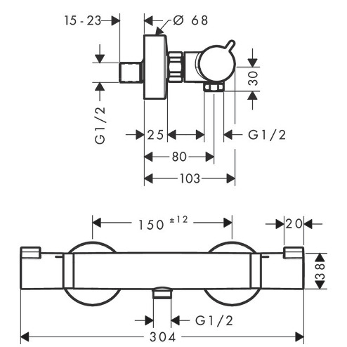 - Entraxe: 150 mm ± 12 mm