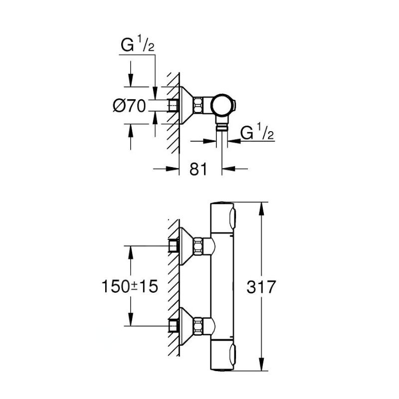 Ce mitigeur thermostatique de douche comprend toutes les innovations de la marque Allemande Grohe, les technologies SafeStop, butée à 38°C, et SafeStop Plus, limiteur de température à 43°C, minimisent les risques de brûlures. Le GROHE StarLight assure la durabilité et l'éclat du chrome.