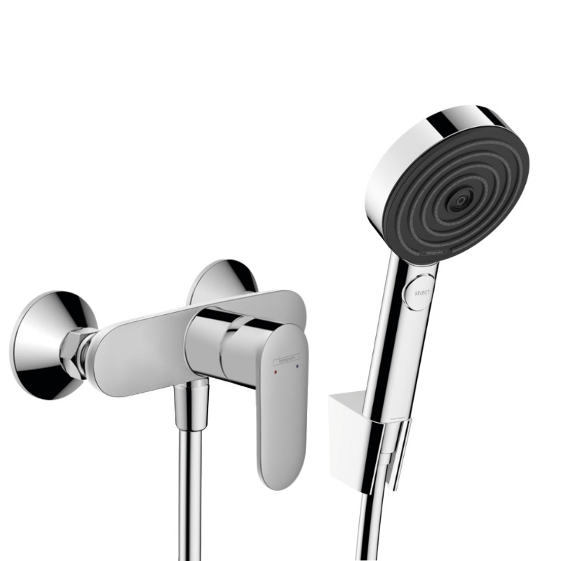 Hansgrohe Vernis Blend Set Mitigeur de douche + Douchette à main XXL 105mm 3 jets + Flexible de douche 125cm, support mural