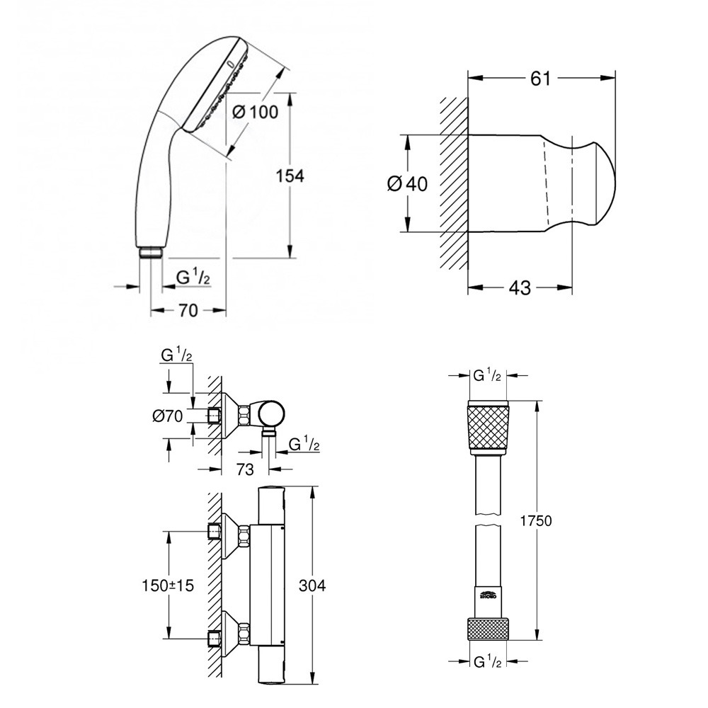 Grohe PRECISION START mitigeur de douche thermostatique 1/2" (345942430)