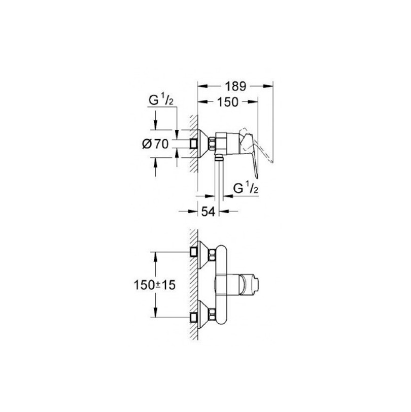 Mitigeur douche avec levier métallique, Chrome, Grohe Bauloop (23340000) :