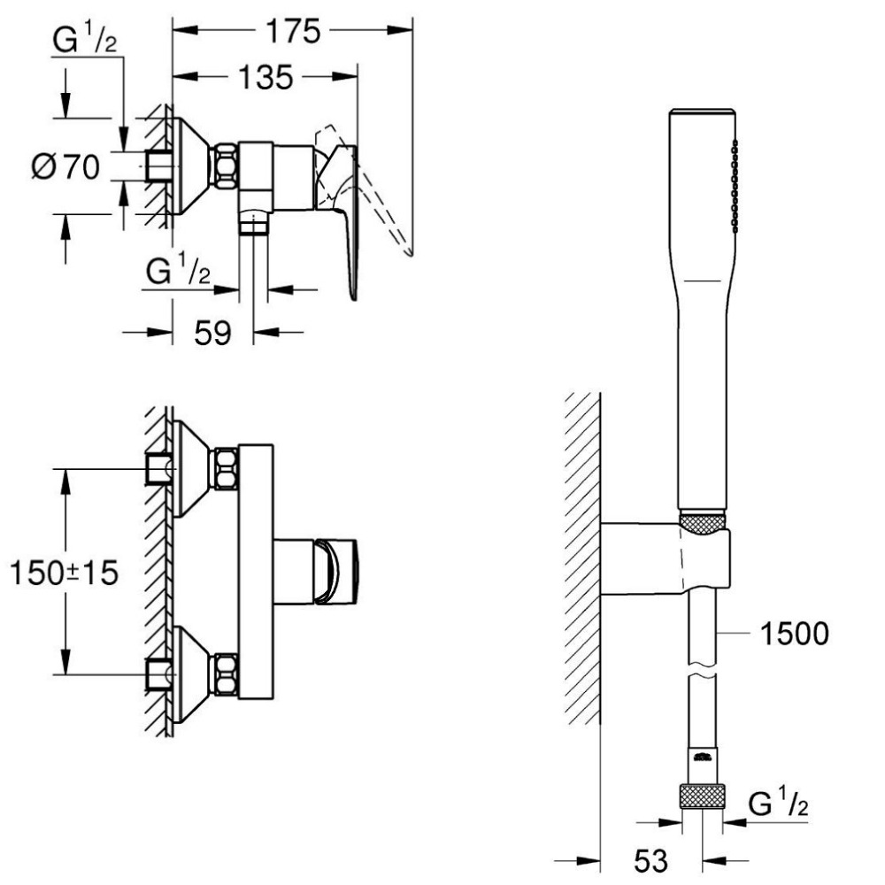 Caractéristiques du Set Mitigeur monocommande douche + Stick Set de douche 1 jet, Grohe Euphoria Cosmopolitan, chrome (23913001-Euphoria) :