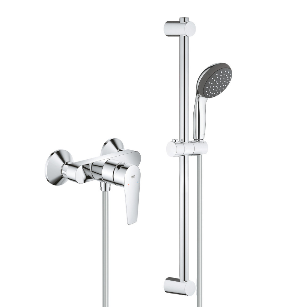 Grohe Vitalio Start 100 Set Mitigeur monocommande douche + Ensemble de douche complet 1 jet avec barre, chrome (23913001-Vitalio)