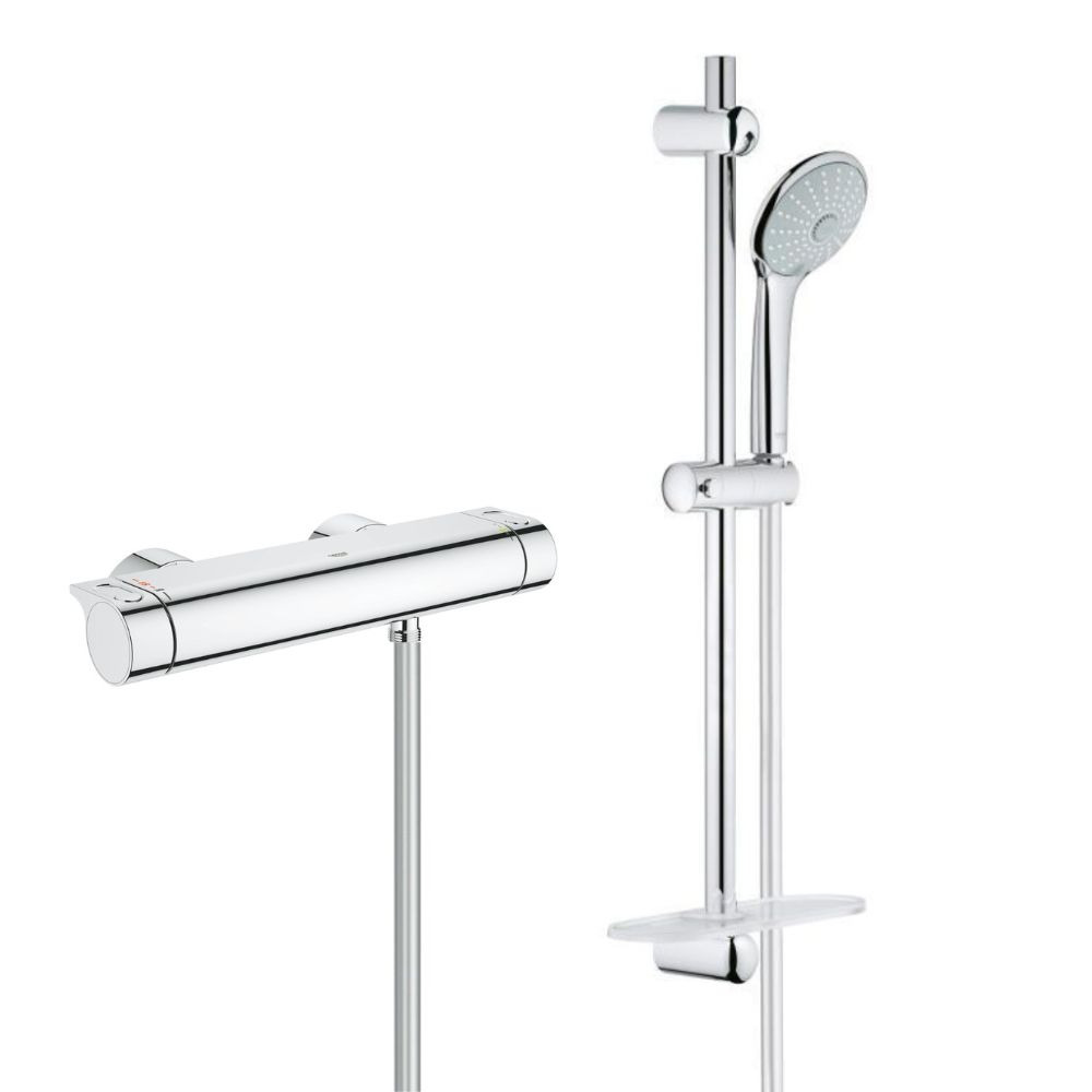 Grohe Massage Set de douche, 3 jets + Mitigeur Thermostatique Douche, Chrome (34446001-Euphoria)
