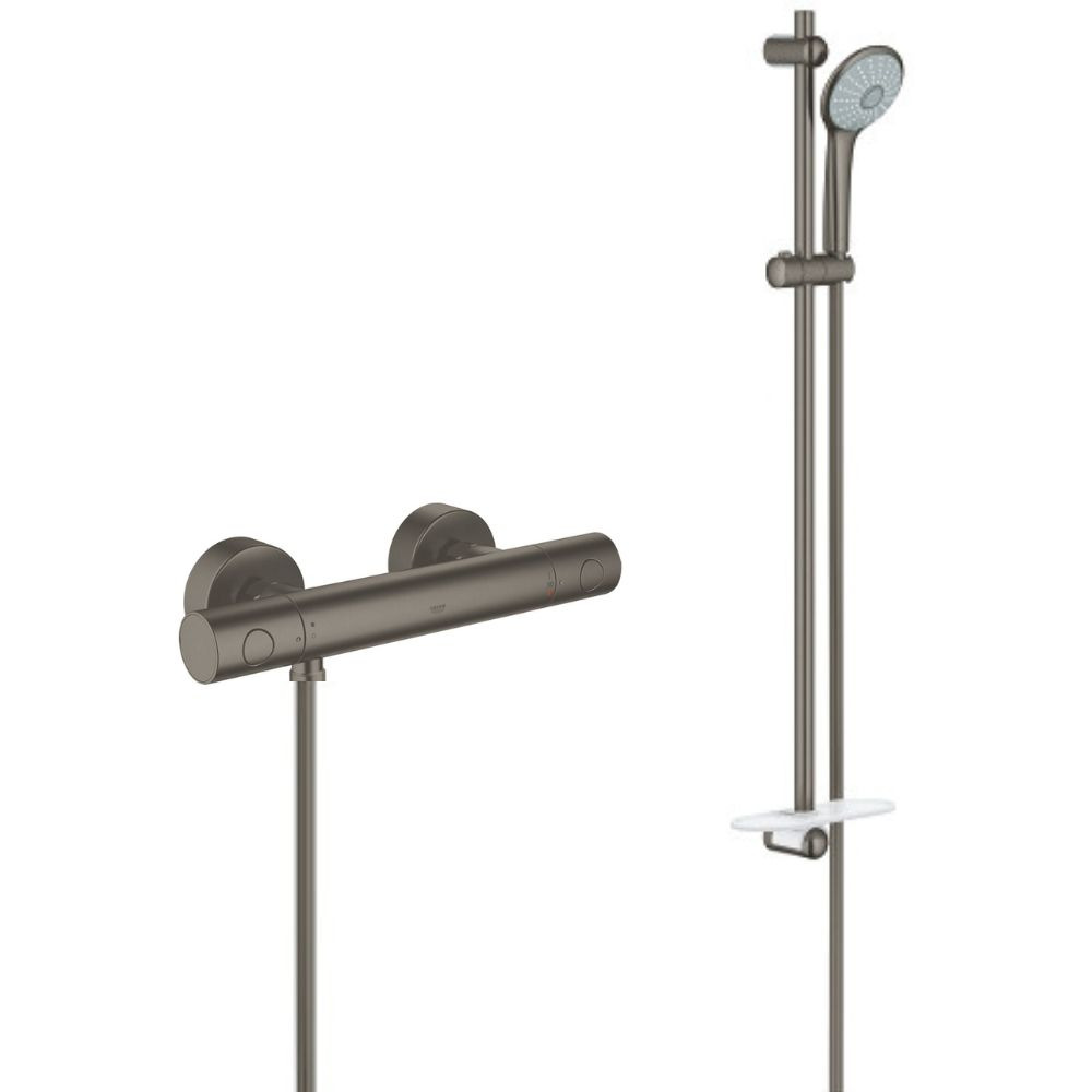 Grohe Ensemble de douche complet 3 jets +Mitigeur thermostatique douche, Brossé (34065AL2-SET)
