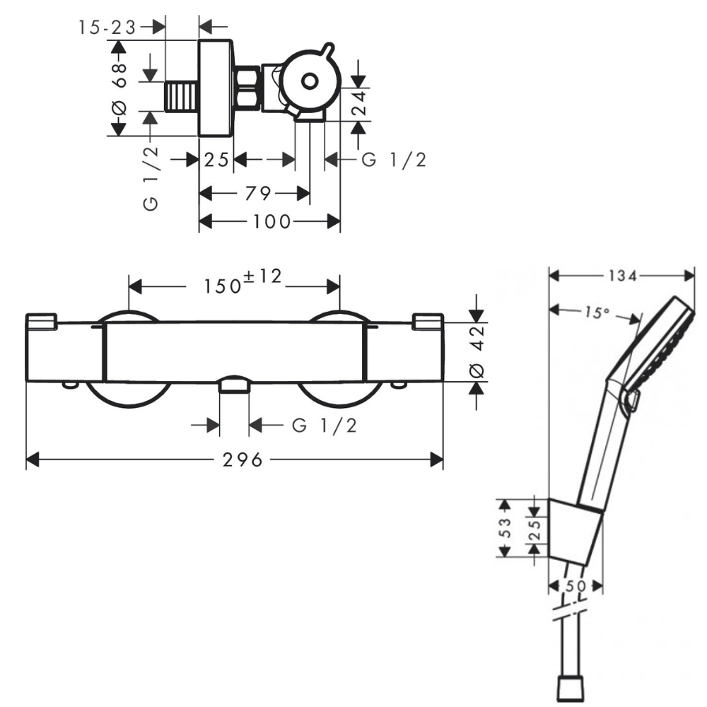 Caractéristiques du Pack Mitigeur Thermostatique douche Hansgrohe Ecostat 1001 CL + Set Douchette Vario / 1,25m Hansgrohe Crometta Porter’S(13211000-Vario) :
