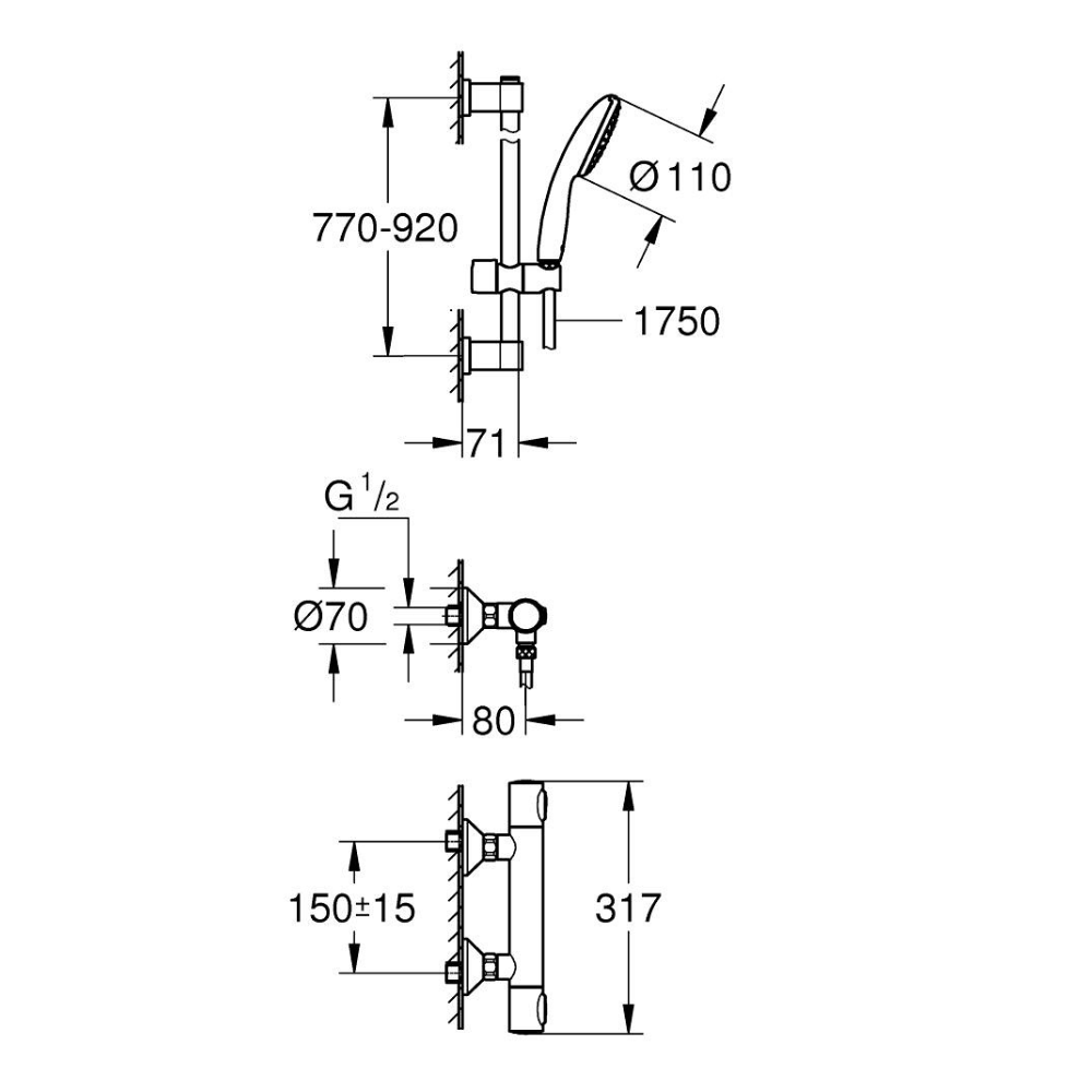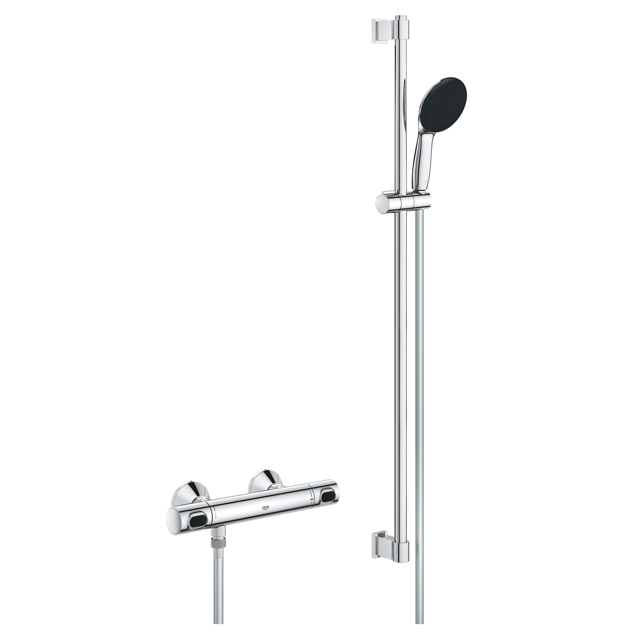 Caractéristiques du Set de douche avec mitigeur thermostatique + Douchette + Barre 90 cm, chrome Grohe Precision Flow (G34805001) :