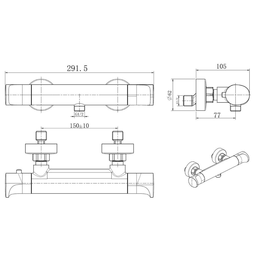 - Entraxe: 150 mm