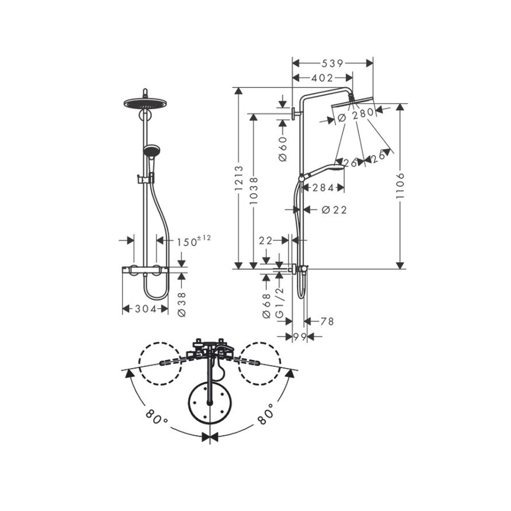 Caractéristiques du set de douche avec mitigeur thermostatique, Hansgrohe Croma Select, bronze brossé (26891140) :