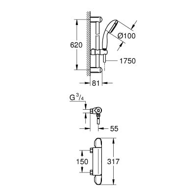 Grohe Grohtherm 1000 Mitigeur thermostatique douche 1/2″ avec ensemble de douche (34152004)