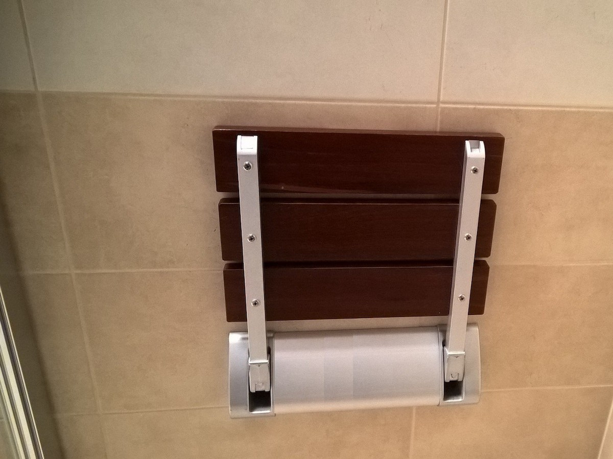 Multi Siège de douche rabattable en bois avec support, Marron (SEDWOOD)