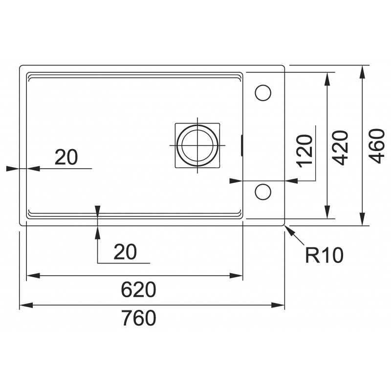Kubus 2 KNG 110-62 Fragranit+ Évier de cuisine sous-plan Pierre grise