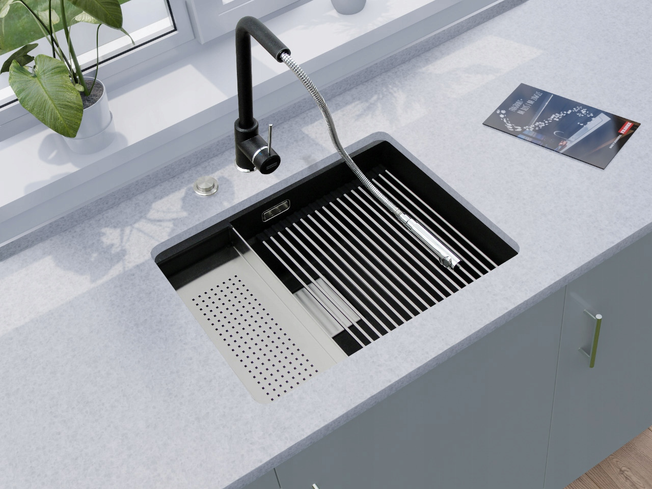 Caractéristiques de l'Évier de cuisine sous-plan Kubus 2 KNG 110-52 Fragranit+ Pierre grise(125.0512.507)
