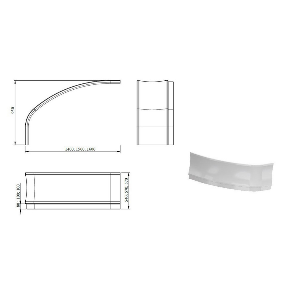 Caractéristiques du Tablier de baignoire 160cm en acrylique, Blanc, Laguna Luiza (LUP1600P) :