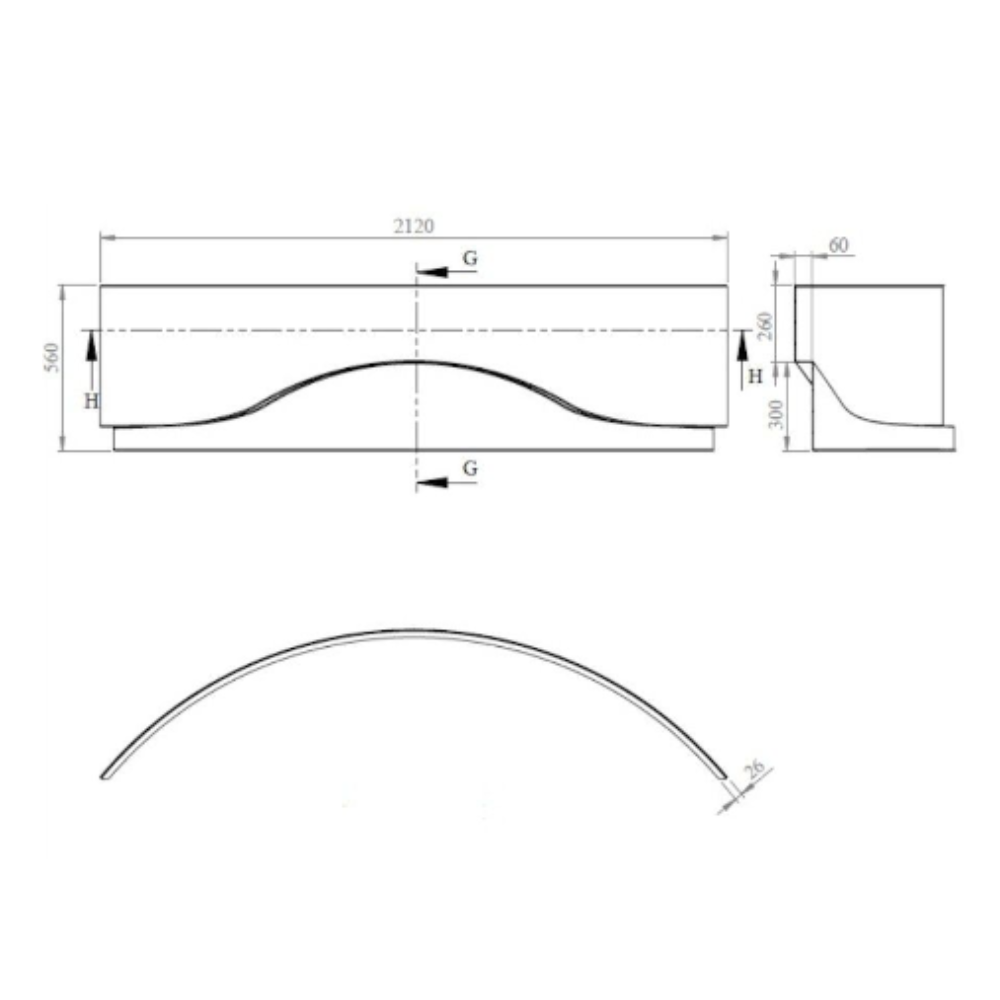 - Dimensions : 2120 x 560 mm
