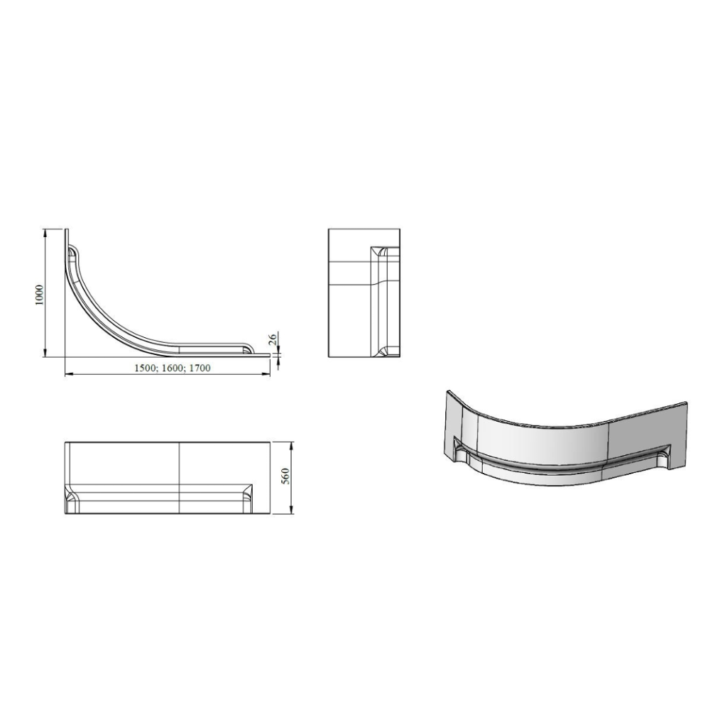 Caractéristiques du tablier de baignoire 150 cm en acrylique, orientation droite, Siko Laguna Fortuna Plus, blanc (FOP1500P) :