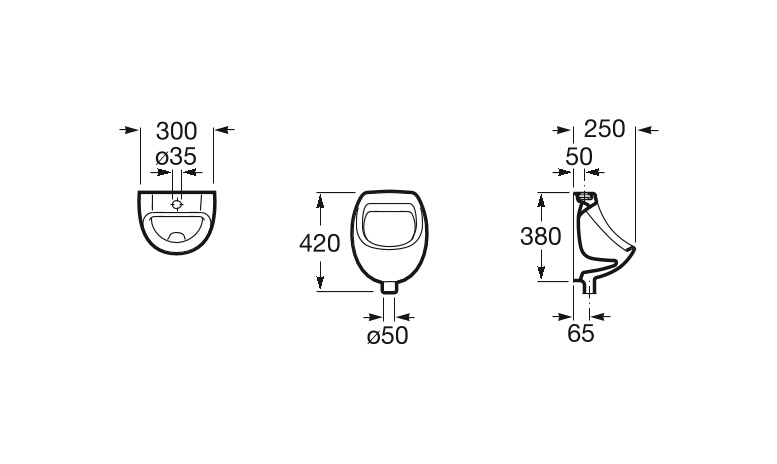 Caractéristiques de l'urinoir suspendu en porcelaine avec alimentation supérieure Roca Mini (A353145000) :