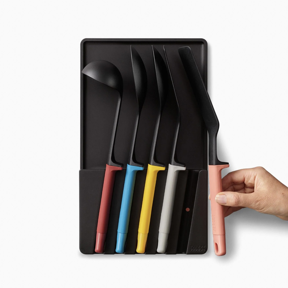 Joseph Joseph Elevate™ Set de 5 couteaux + 5 ustensiles de cuisine avec rangement, noir (10566)