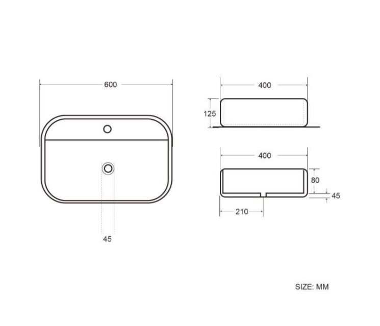 Caractéristiques de la Vasque à poser 60x40 cm, sans trop-plein, avec trou pour robinetterie, Noir mat, Swiss Aqua Technologies Infinitio (SATINF6040BKM) :