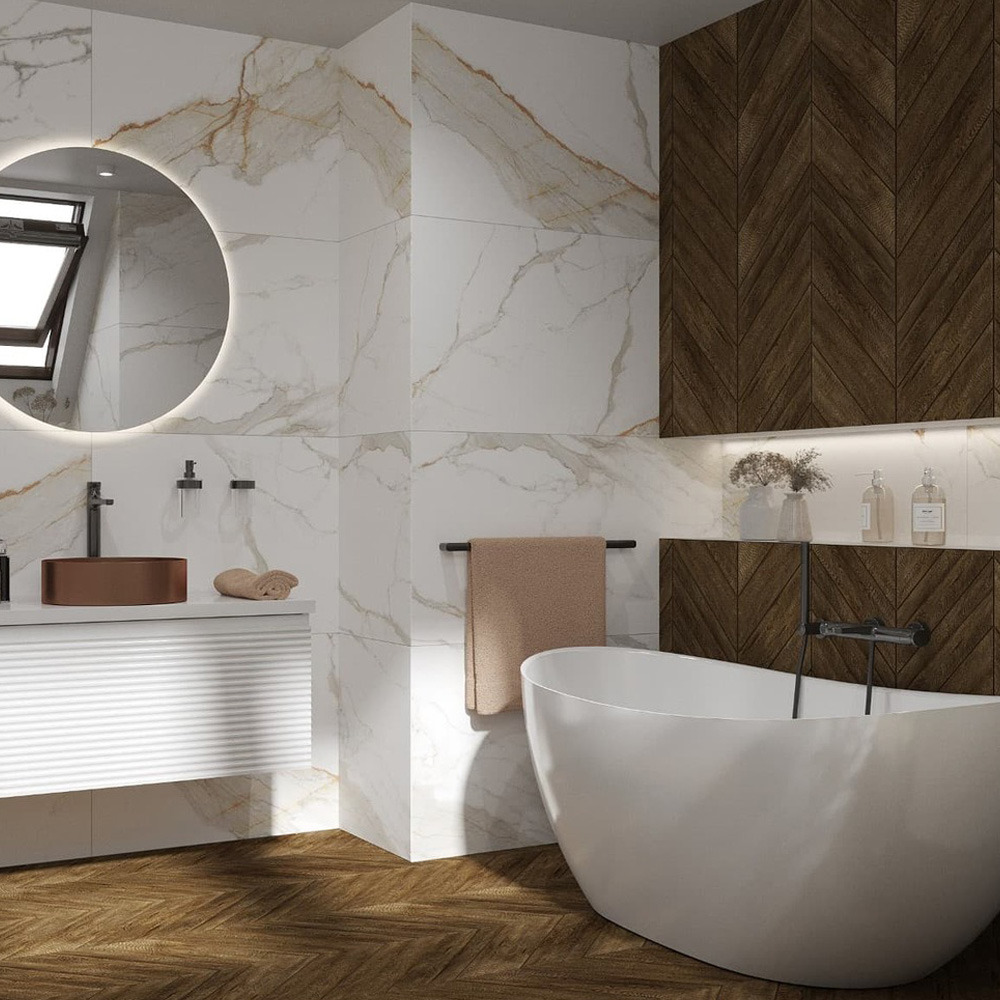 Retrouvez cette vasque à travers la salle de bain interactive LIVEA et son style Rustique-Moderne.