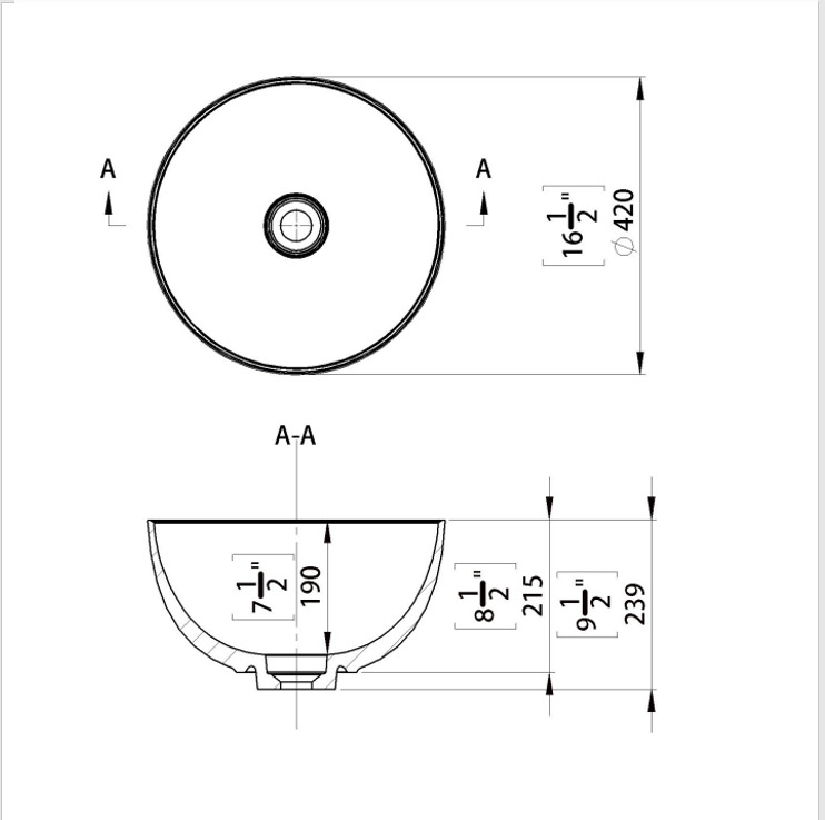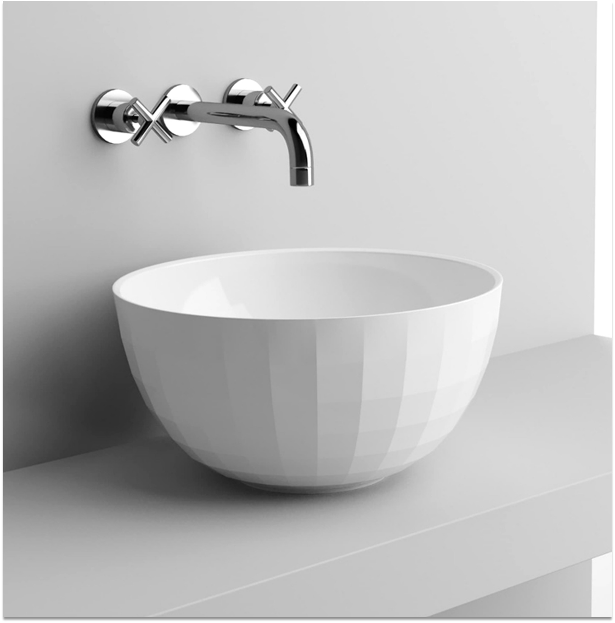 Caractéristiques de la Costa vasque à poser 42x42x23.9 sans trop plein, en Marbre Coulé, Blanc (SATCO4242)