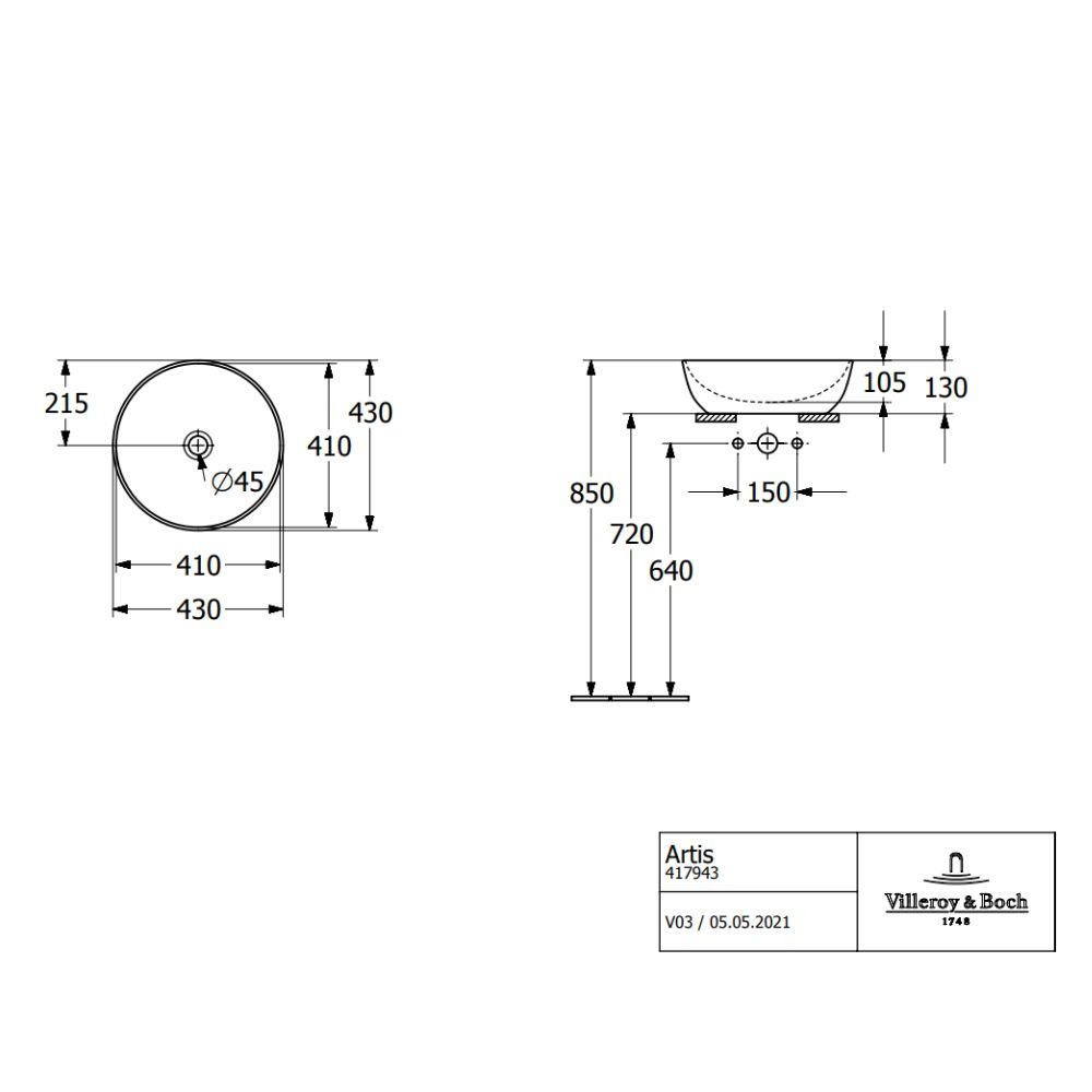 • Convient pour: robinetterie murale , meuble Villeroy & Boch assorti |Robinet surélevé