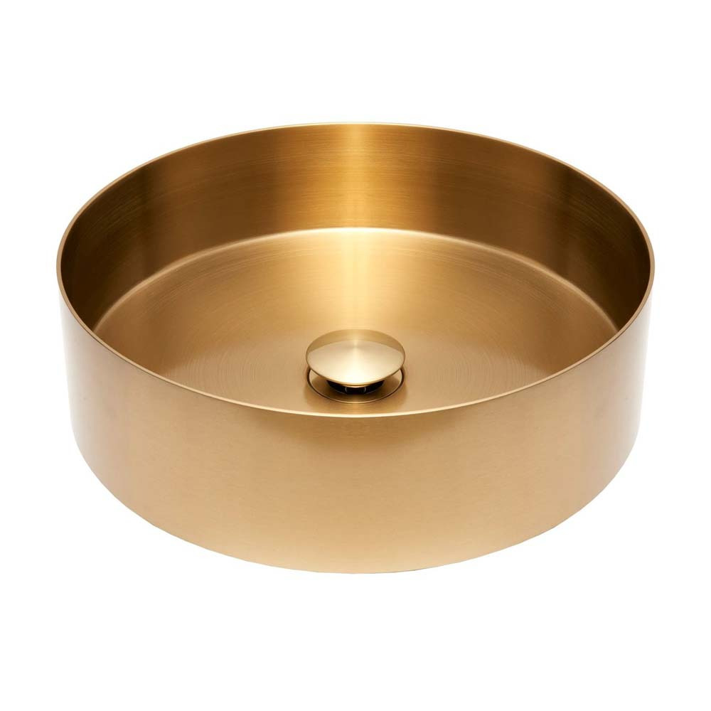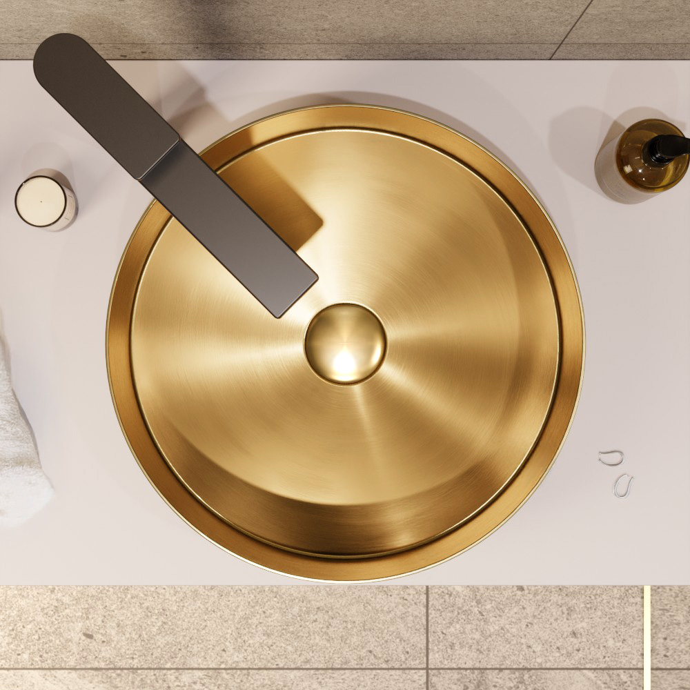 Ceramia Timeless Vasque à poser en Acier inoxydable, 38 x 38 x 11 cm sans trop-plein + Bonde, or brossé