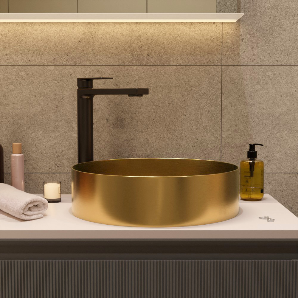 Leurs finitions brossées confèrent un aspect minimaliste et raffiné, apportera un rendu sophistiqué à votre salle de bain, sans en faire trop. Associez la vasque TMLW-3838BG à un plan vasque et créez de design unique au cœur de votre salle de bains.