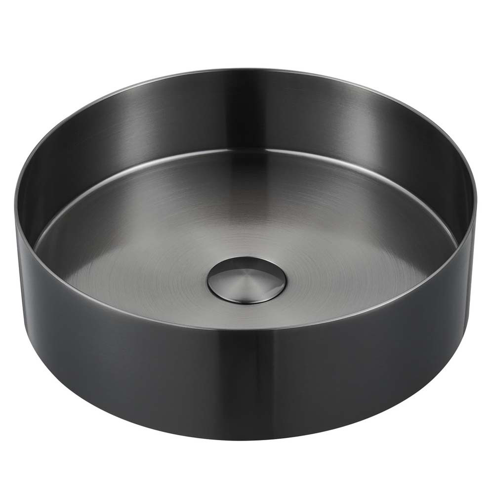 Ceramia Timeless Vasque à poser en Acier inoxydable, 38 x 38 x 11 cm sans trop-plein + Bonde, gun métal noir brossé