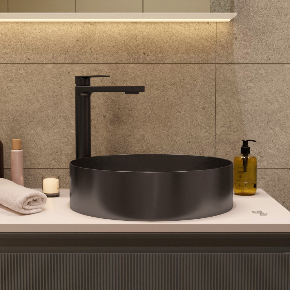 Les finitions brossées ajoutent une touche de sobriété et de raffinement, conférant discrètement une élégance à votre salle de bains. Associez la vasque TMLW-3838BGM à un plan vasque pour façonner un design singulier au cœur de votre salle de bains.