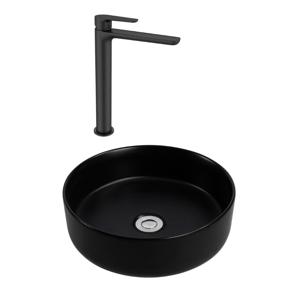 PixL 36 x 12,5 cm vasque à poser + Swiss Aqua Technologies Mood mitigeur lavabo XL + Ceramia bonde (CEPX36BKMSAT285C)