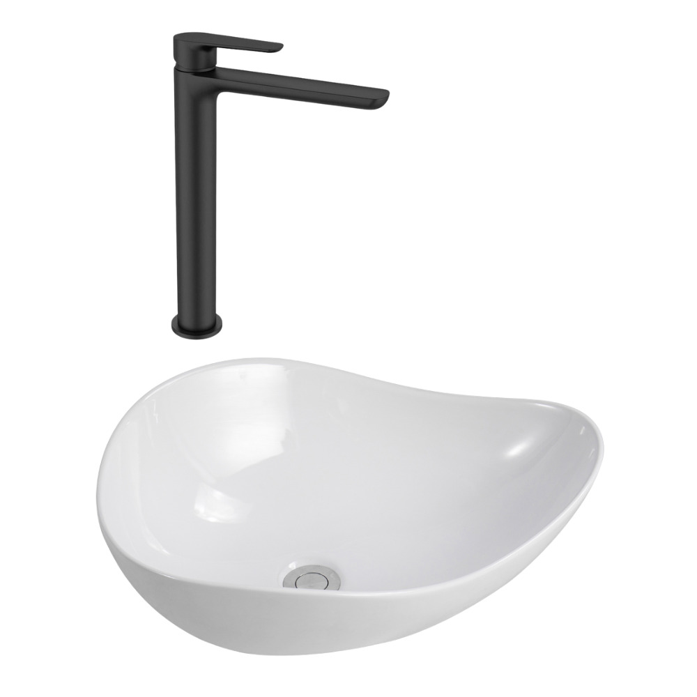 Set PixL 51 x 38 x 19 cm vasque à poser blanc brillant + mitigeur XL + bonde (CEPX50538SAT285C)