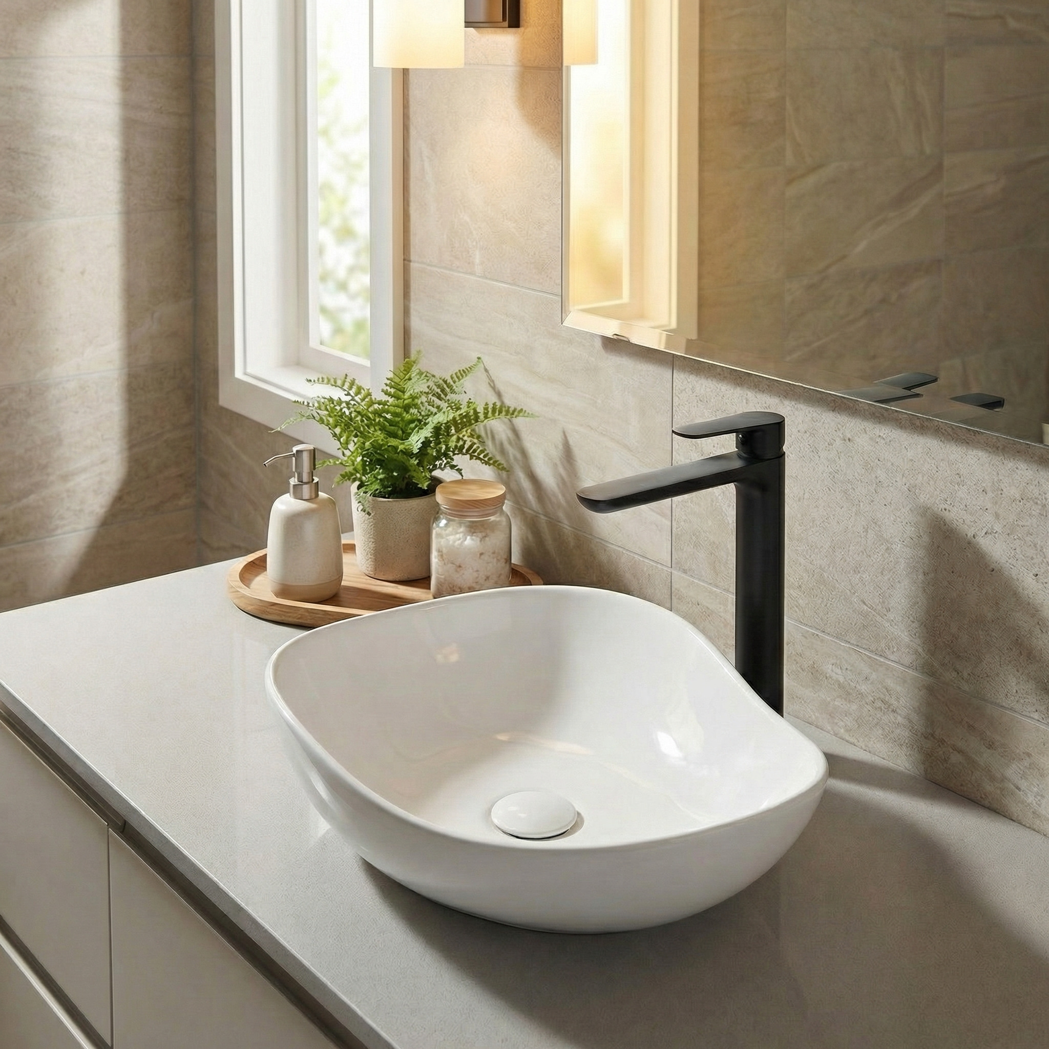 Le mitigeur XL est spécialement adapté aux vasques à poser : hauteur idéale, confort d’utilisation, proportions équilibrées.