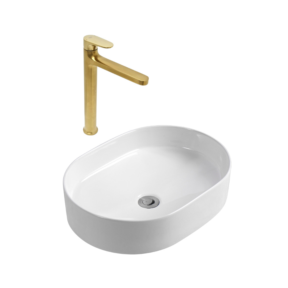 DARK mitigeur lavabo XL, or brossé + Ceramia PixL 50x36,5x12 cm vasque à poser, sans trop-plein, blanc (SAT285PBZCEPX5037)