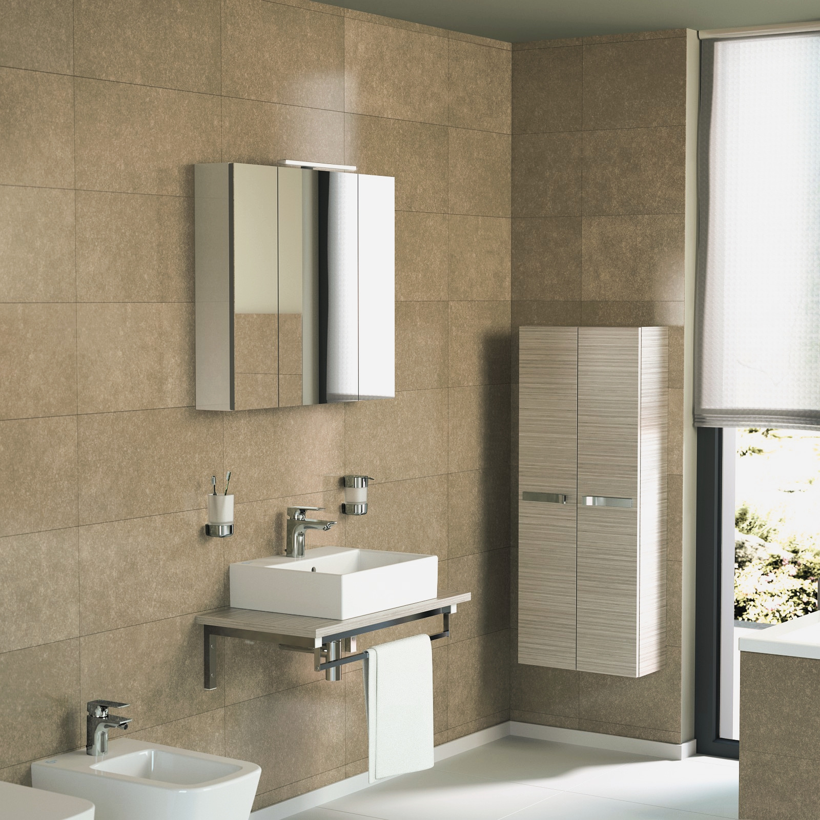 • En grès fin. Fixation murale par 4 tire-fonds non fournis