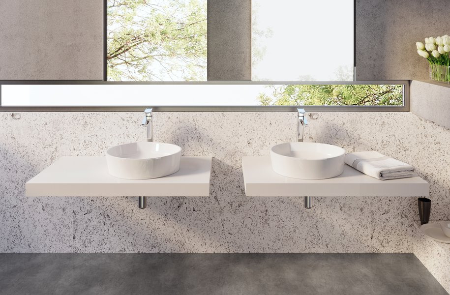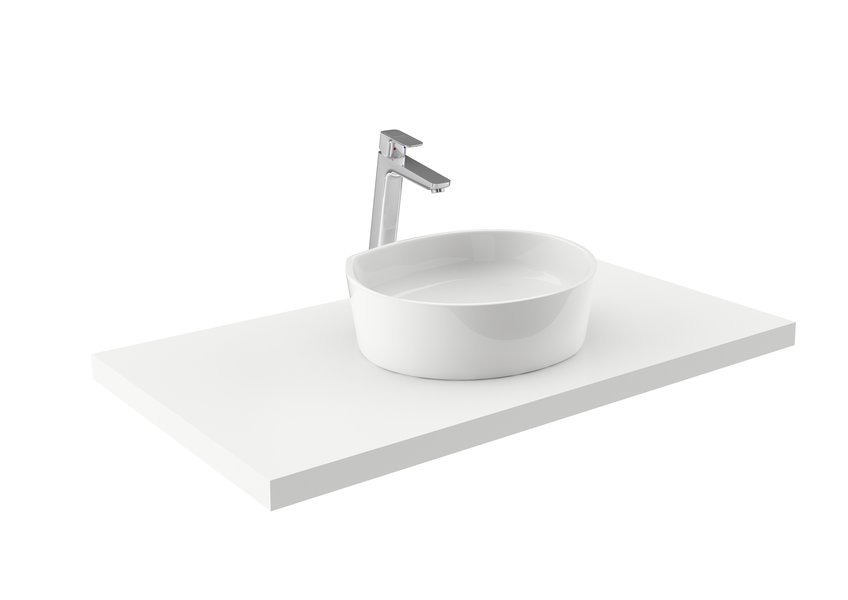 Le lavabo d'auteur, fabriqué en marbre coulé, est inspiré par la forme géométrique de base de cercle. Dans la salle de bains, il compense idéalement la sévérité des autres éléments orthogonaux, comme des carrelages, la cabine de douche ou le mobilier. Il convient pour une installation sur une plaque.