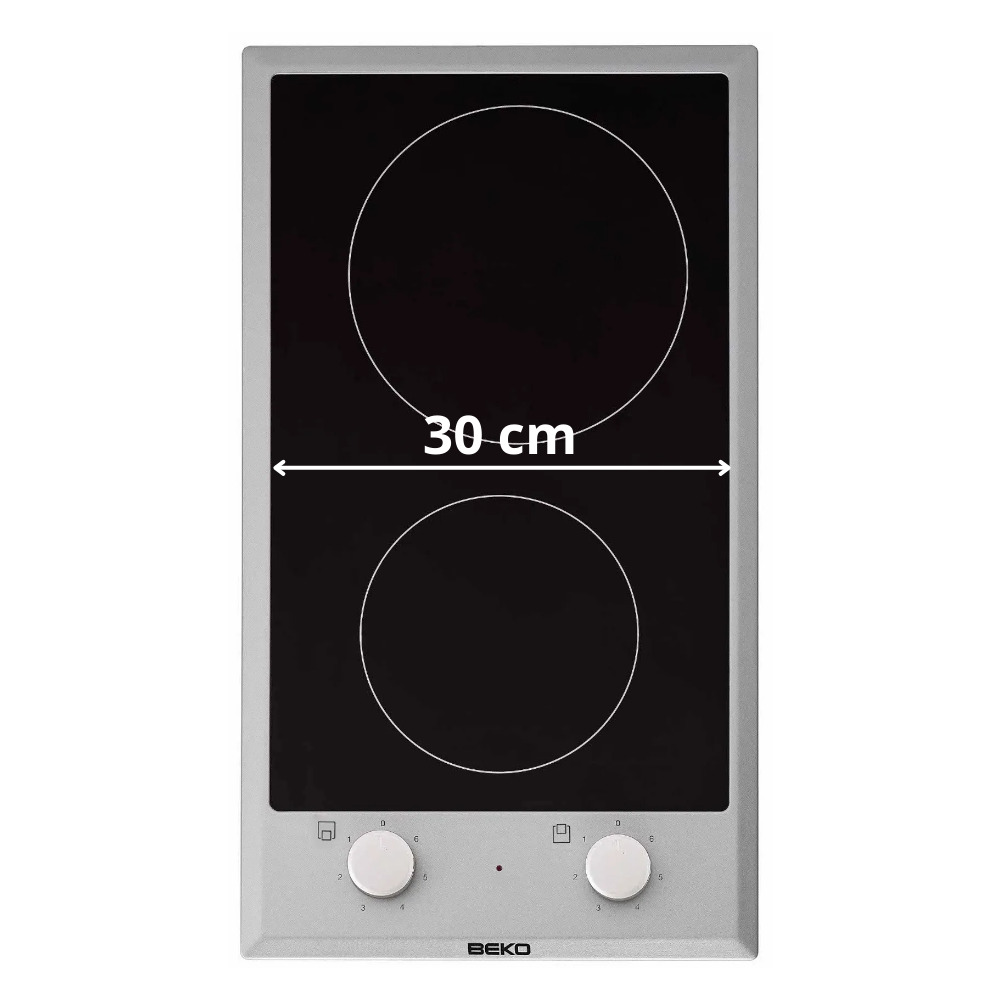 Beko Plaque vitrocéramique 2 foyers, 30 cm, 6 niveaux de puissance, cadre inox (HDCC32200X)