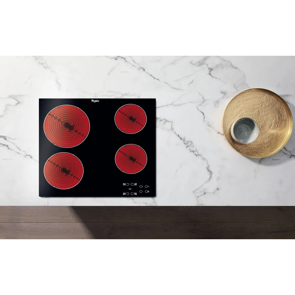 Whirlpool Plaque de cuisson 4 zones, vitrocéramique, contrôle sensitif, avec 4 minuteurs, noir (AKT8090NE)