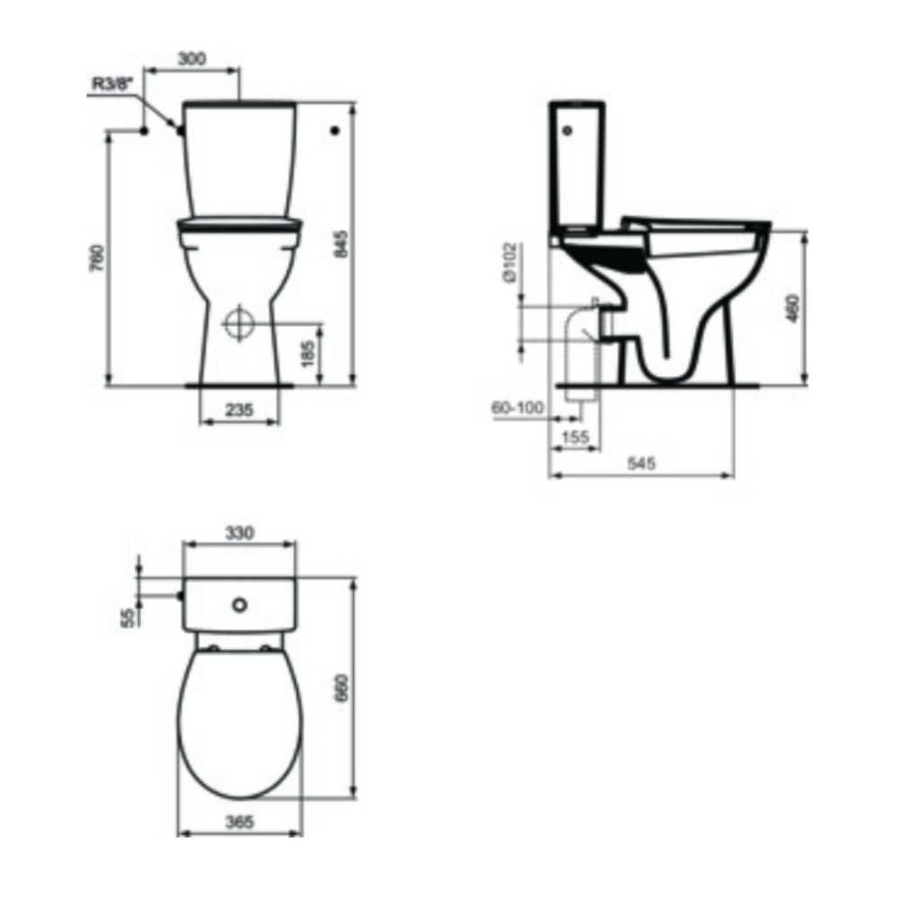 - Réservoir 3/6L, alimentation latérale