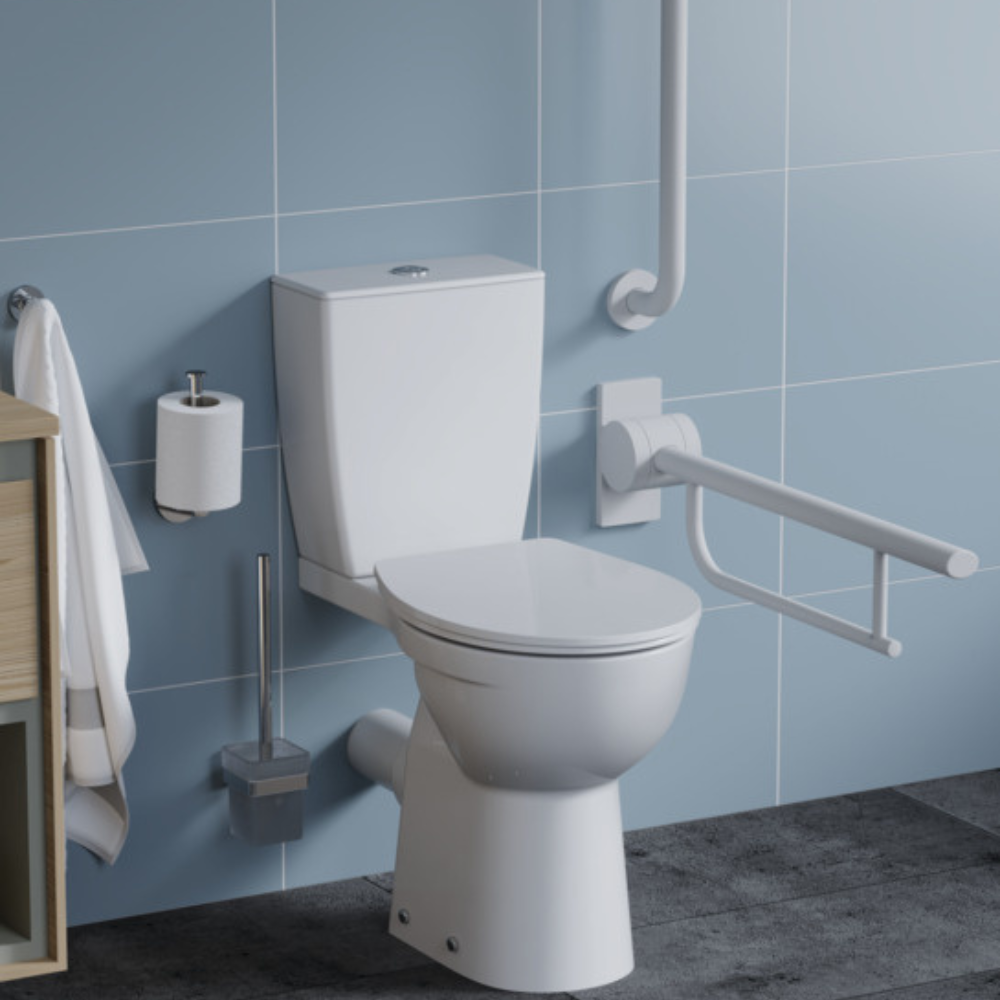 Ideal Standard Ulysse+ WC à poser PMR avec bride et kit de fixation au sol + abattant thermodur et charnières inox, blanc (P014901)