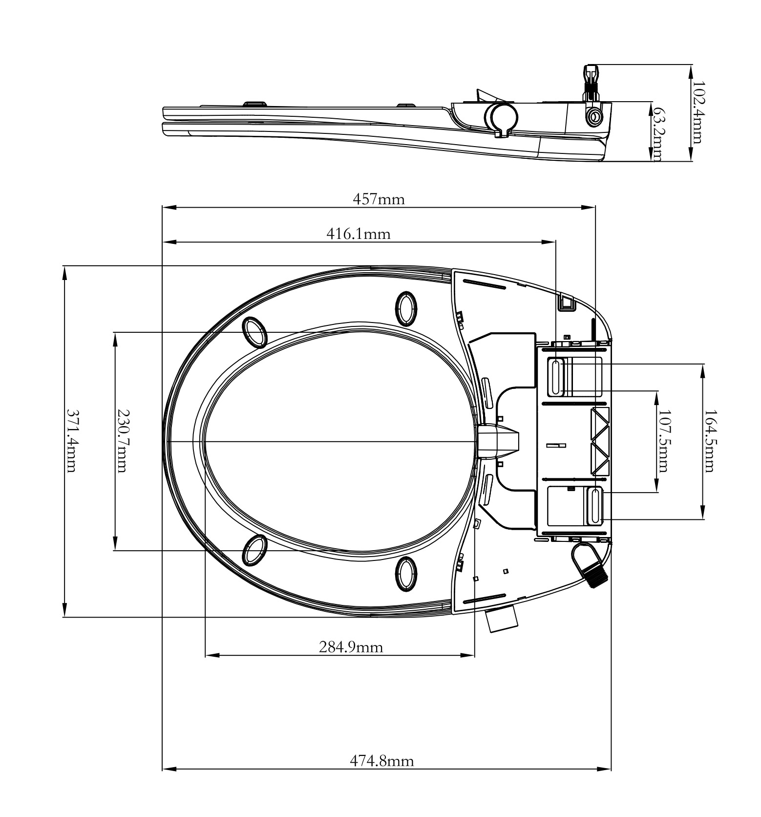Toutes les fonctions sont entraînées par la pression de l'eau et le siège est contrôlé par une seule commande. Pour le lavage postérieur, tournez simplement la roue vers l'arrière. Plus il tourne, plus le jet est fort. Pour le lavage féminin, la roue tourne vers l'avant. L'ensemble du système est très simple.