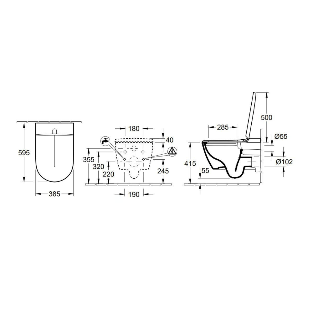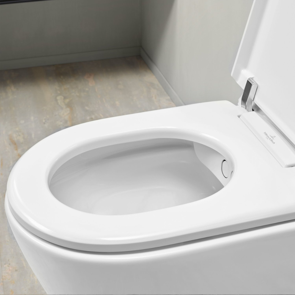 Caractéristiques du WC lavant suspendu sans bride CeramicPlus avec abattant SoftClose et DirectFlush, Villeroy & Boch ViClean-l 200, blanc (V0E200R1) :