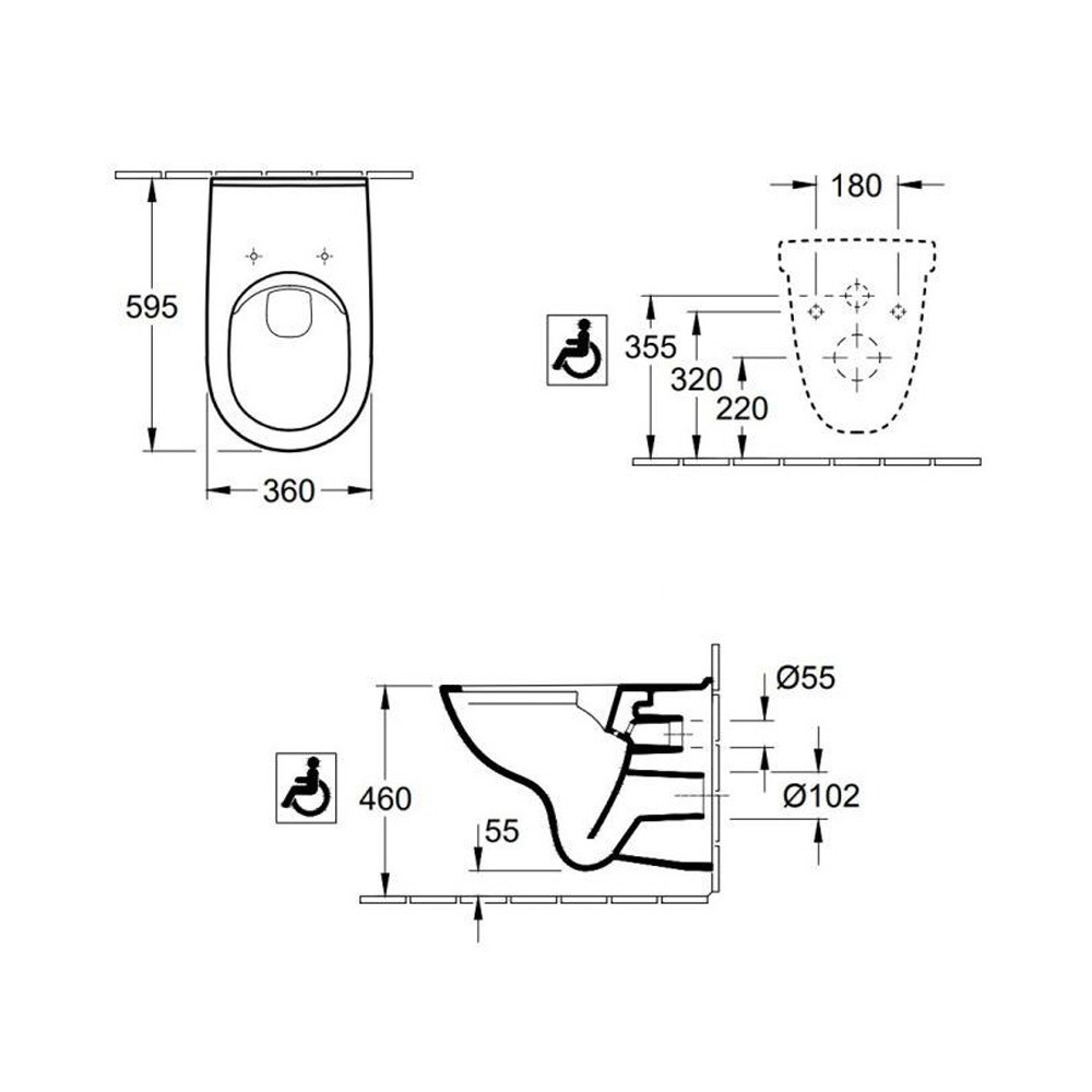Caractéristiques du PMR ONOVO VITA cuvette suspendue sans bride DirectFlush, abattant avec rebord de forme préhensible, Blanc (VicareRimless) :